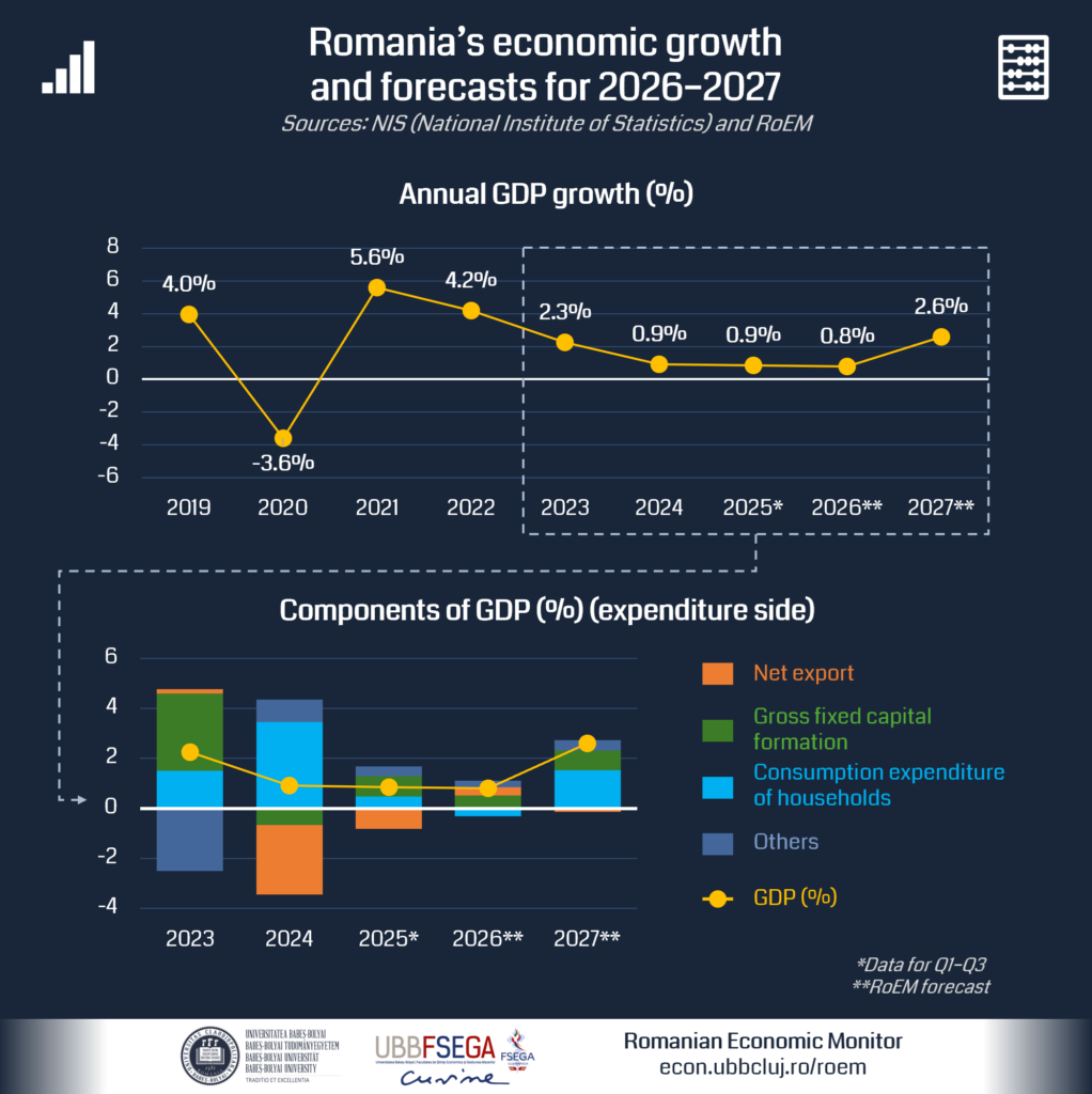 Romania may be heading into a “mirror year” in 2026. Full-year GDP growth and average inflation could end up looking similar to 2025, but the intra-year sequencing may flip: 2025 started relatively better and ended worse, while 2026 may start weak and improve into H2 as disinflation resumes and the fiscal consolidation shock fades.