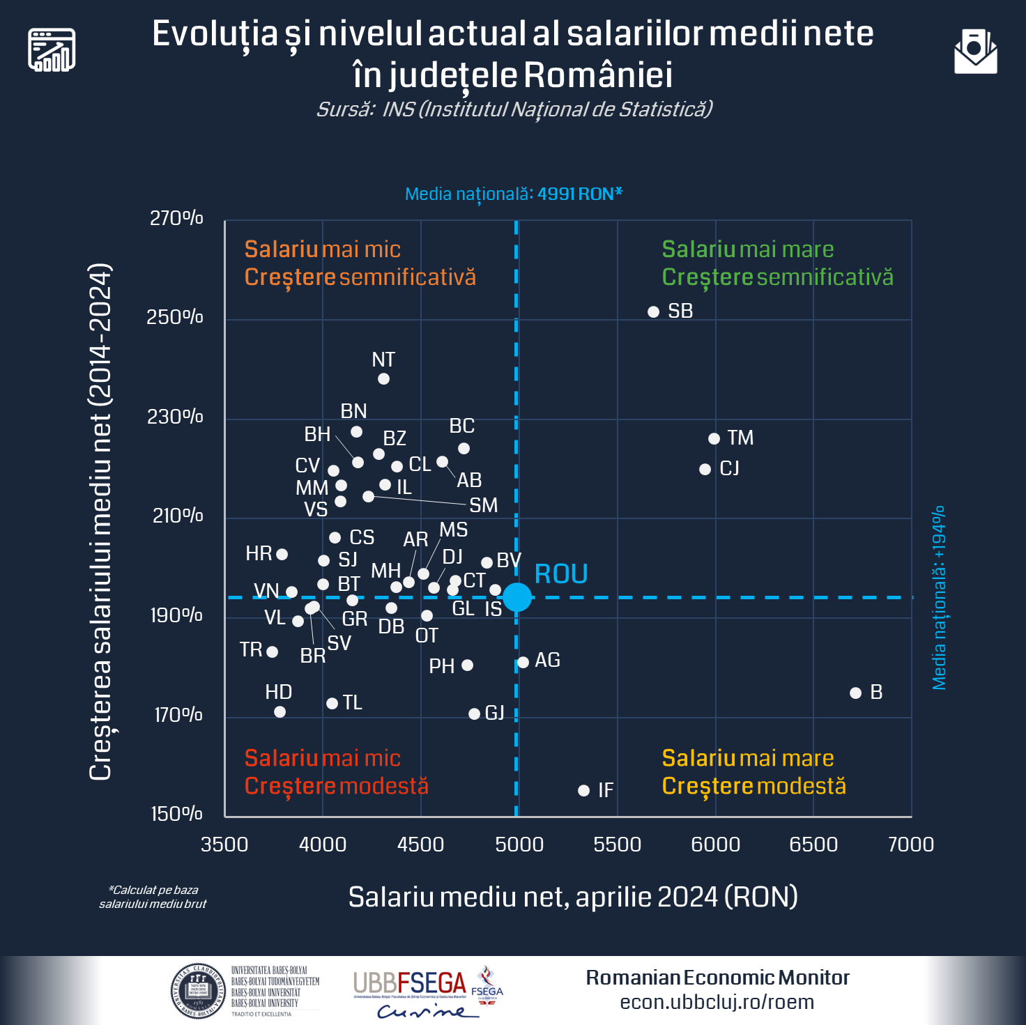 Evoluția și nivelul actual al salariilor medii nete în județele României